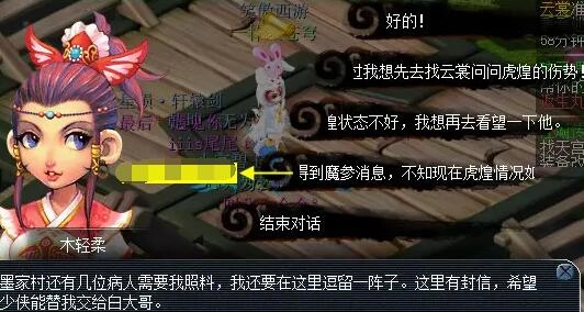 3、前往墨家村(81,61),接着到墨家民居(31,27)与【孟机】对话,之后在周边(19,11)和【木轻柔】对话,并将【三药x5】交给她。