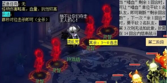 13、前往墨家民居(23,15),打败【玲珑结1】,然后与【玲珑结2】交谈,从而进入BOSS战。