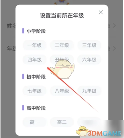 3、于设置当前所在年级的页面,仅需设置所在年级就行。