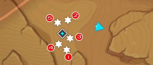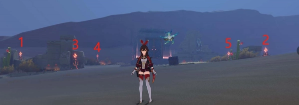 2、正确的点亮顺序见下图,各位可参照图中序号1 - 5的顺序,在游戏里触发机关。部分机关需绕过空气墙才能抵达。