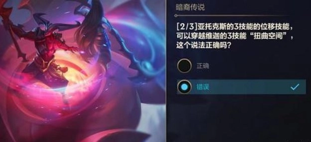 2. 亚托克斯的三技能属于位移技能,它能够穿越维迦的三技能“扭曲空间”,这种说法是否正确?