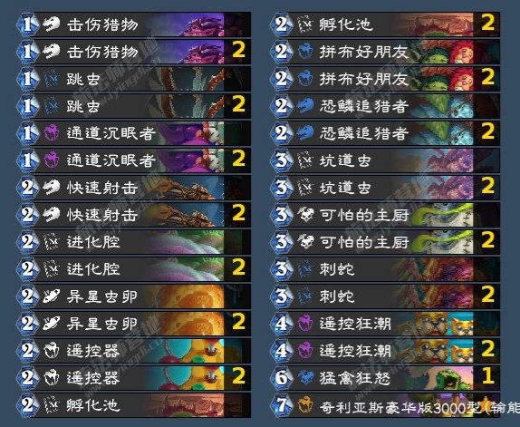 1、针对这套卡组,前期建议着重保住频率。通过多频率操作,能让奇利亚斯快速减费并拍下;另外,还可依据进化腔的buff来操控跳虫,如此也能够多开出跳虫,进而打出跳虫与刺蛇的combo。