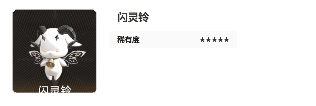 闪灵铃与其他魔灵的稀有度相同,同样是5星级魔灵。想必这只魔灵会俘获众多玩家的心吧。闪灵铃的外形宛如一只萌萌的小奶牛,有着纯白的皮肤,脖子上系着一个精致的铜铃铛,背后长着一对仿佛只有花仙子才有的翅膀,脑袋上还生着一对黑色的小牛角。单从外形来看,闪灵铃就已然完胜其他魔灵了。