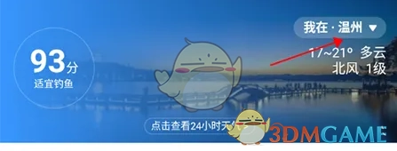 1. 开启钓鱼人app,在首页右上角轻点城市板块(比如:温州)从而进入。