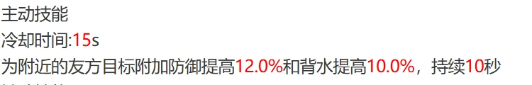 摇曳菇的技能较为简单,仅有主动技能与被动技能两类。主动技能主要可增强队友的防御能力,当摇曳菇身旁的队友防御能力降低时,只要摇曳菇在侧,就能为其赋予12.0%的防御力,背水状态下还会额外提升10.0%,这两种能力的持续使用时间为10秒钟,技能冷却时间是15秒。