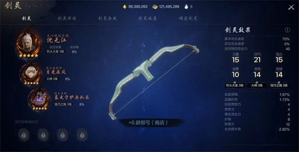 副剑灵能选两个,首推月光疾风或若律。这俩角色效果一致,名为火神,可直接按百分比增幅弓的输出,还能给boss附加二次伤害。此增伤并非微不足道,而是依据武功攻击增幅比例提升,培养到位能让角色输出翻倍暴涨。不管是用弓还是剑,这都是必拿的剑刃效果。要是拿不到这两个角色,退一步讲,灵教院露露也有相同效果,只是属性增益没那么显著。