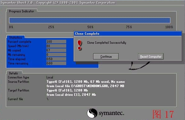 10、恢复完毕,选择右侧的reset重启电脑。