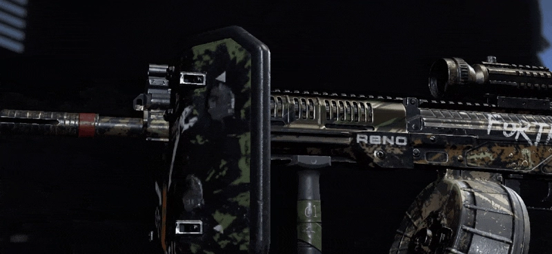 雷诺伊尔具有代表性的武器,分别是【壁垒·RPK16】与【壁垒·AN94】。其外表呈现出绿色、黑色和铁锈色相互交织的斑杂涂装,从这便能看出,它们是战士们在实战中多次使用过的武器。