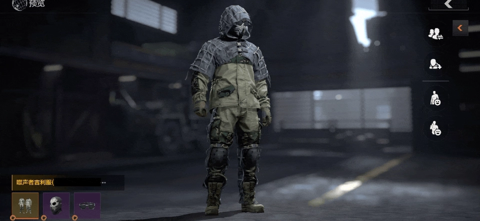 「噤声者吉利服」以军绿色作为主色调,在肩部、腿部等部位配备了大面积织带。这些织带可用于编织杂草、树叶等,从而模拟各类作战环境,实现自身伪装。