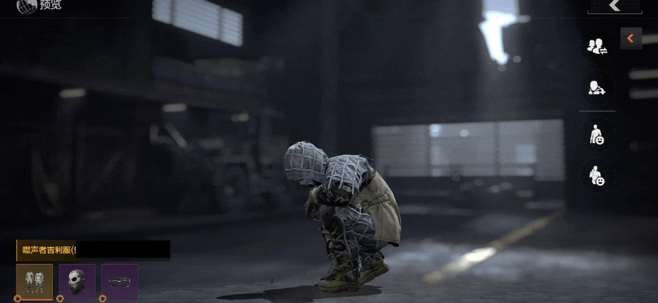 拥有两个专属动作,分别是【在找我】与【狩猎开始】。其中,【在找我】这个动作表现为解除伪装,从地面蹲起并拍掉身上的树叶;而【狩猎开始】这个动作是探查地面留下的痕迹,以此来寻觅敌人所处的位置。