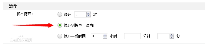 请点击编辑器左侧的【脚本属性】,以打开【基本设置】界面。接着,在“运行”类目当中,选择【循环到按中止键为止】 。