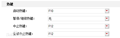 热键的设置同样在基本设置选项卡中完成。只需点击【热键】下的【启动热键】,接着按下你期望设置的启动键与中止键,例如F10和F12 。