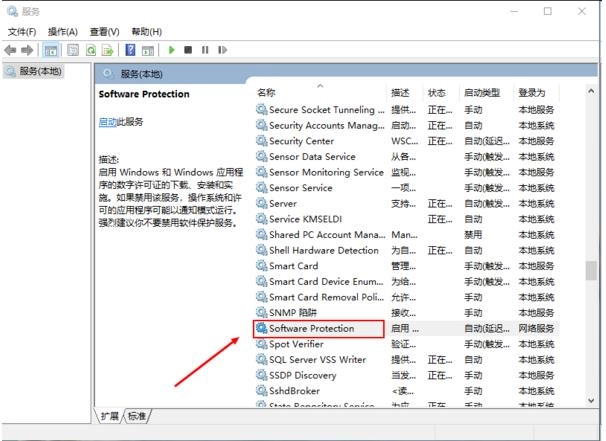 2. 鼠标向下滑动,找到“Software Protection”服务。