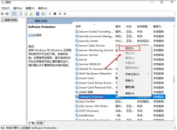 注意,如果无法启动Software Protection服务,那么先可以重启一下电脑再试。