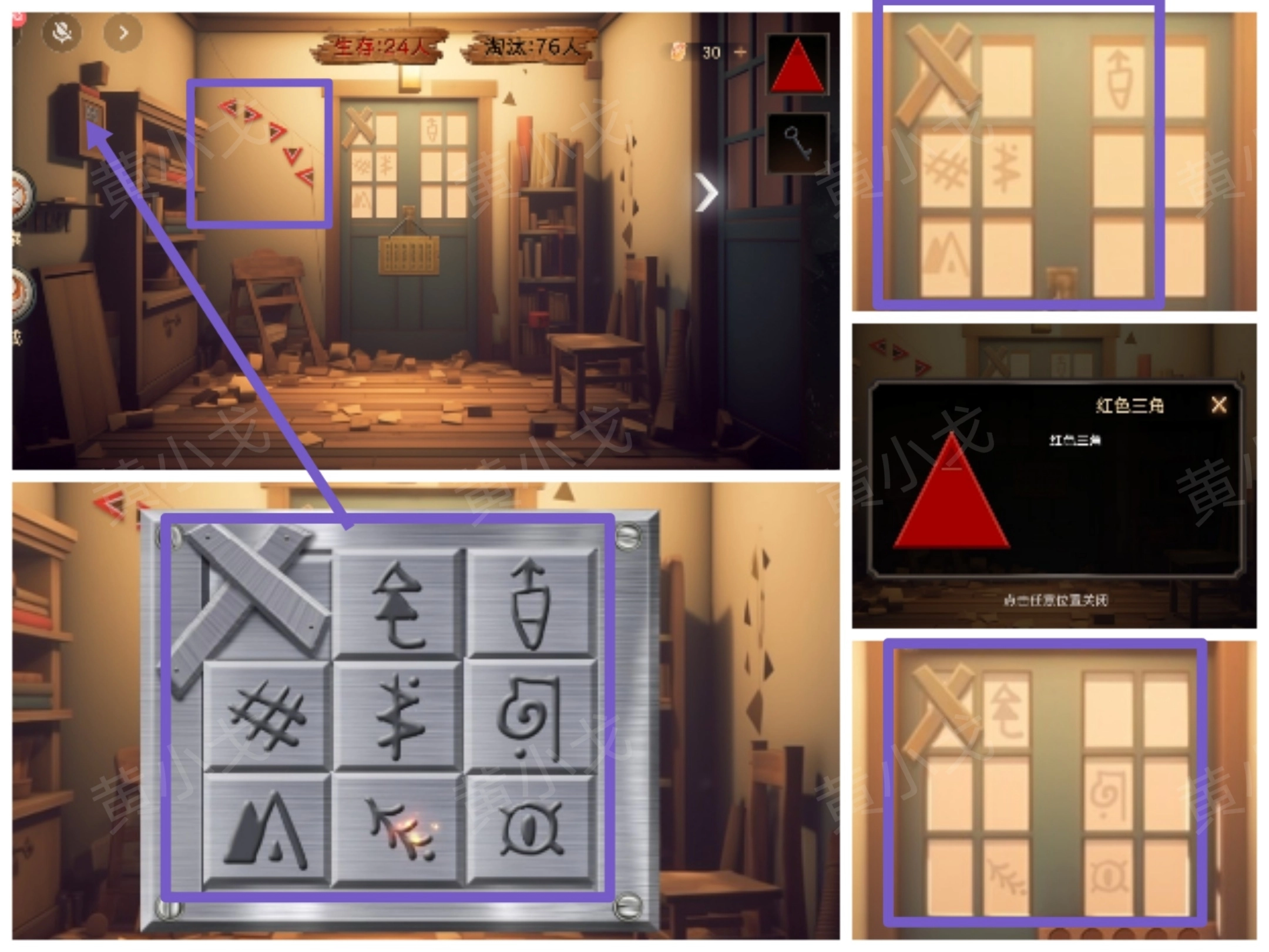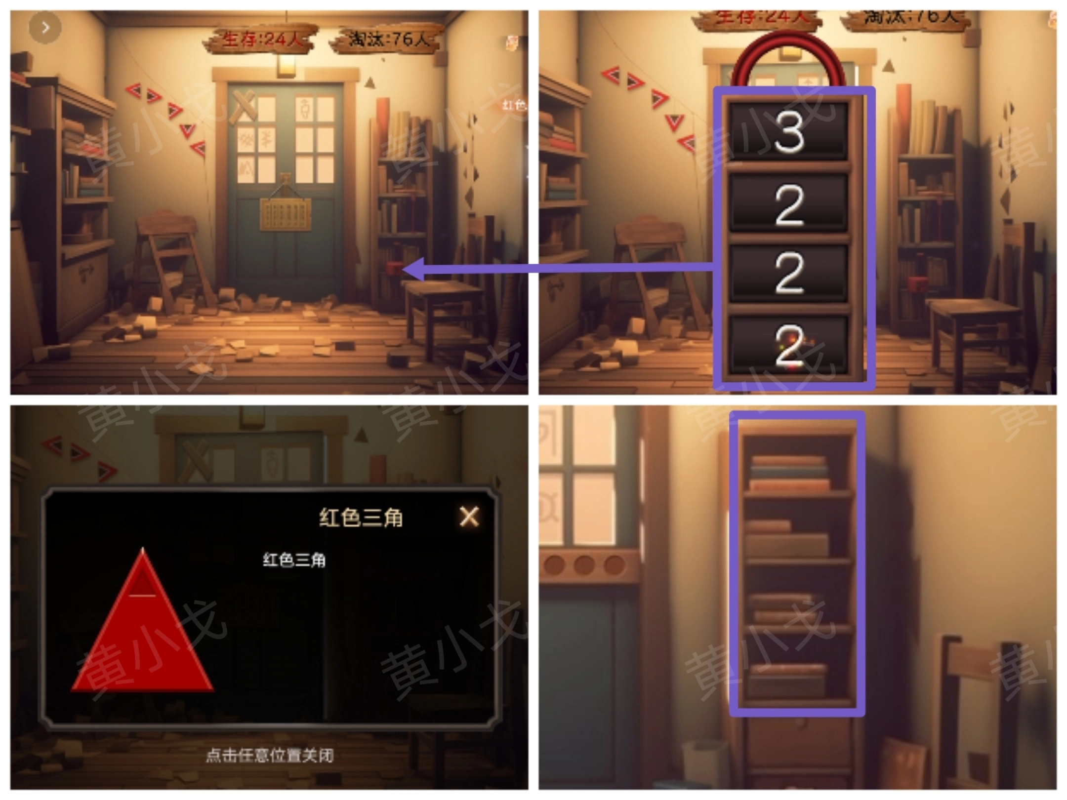 2. 轻触箱子上的密码锁,依据男主所在处门上呈现的线索,对密码锁进行相应调整;随后开启箱子,获取【红色三角】