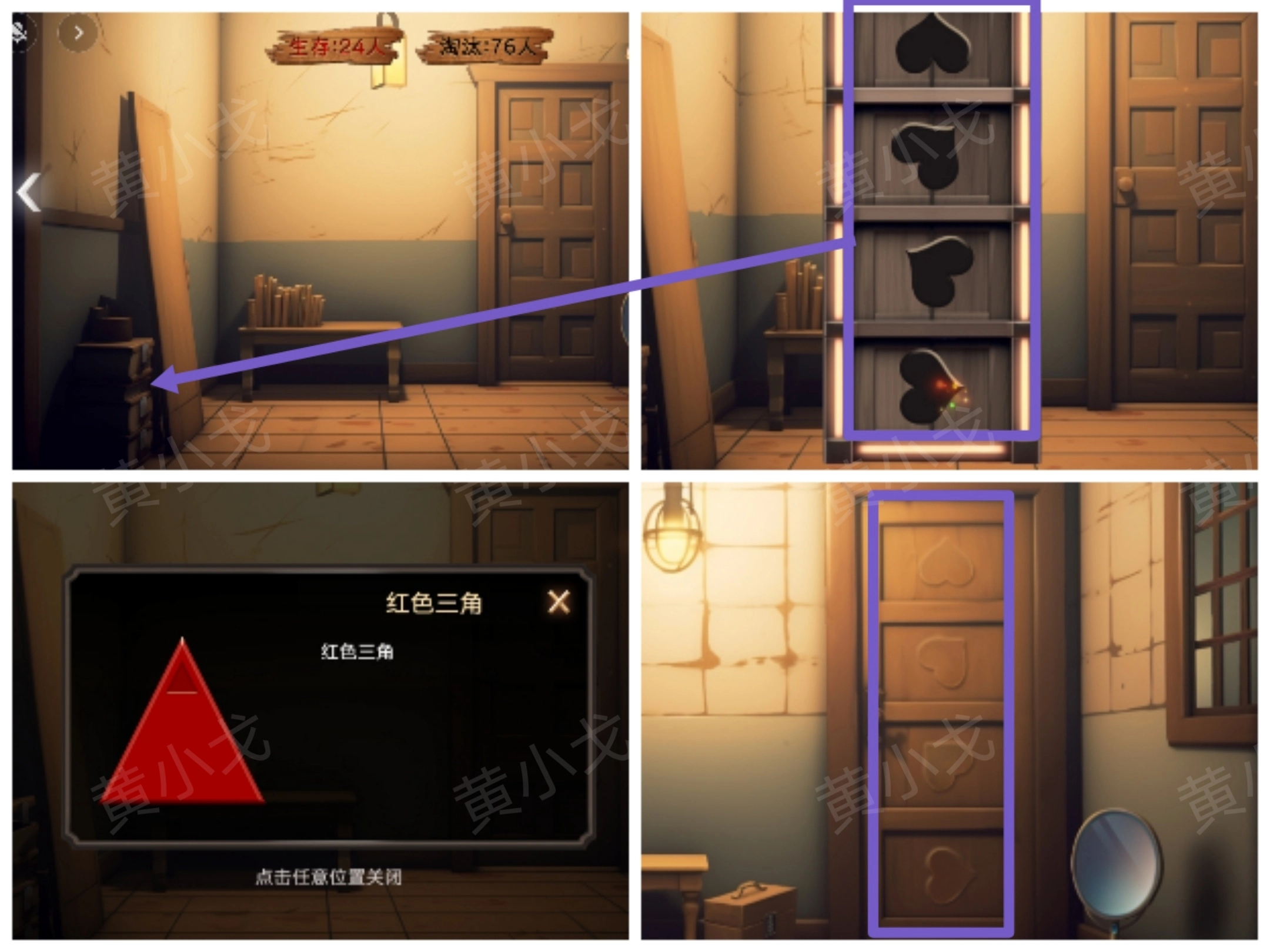 将墙上的红色三角朝向告诉男主:左右右下左