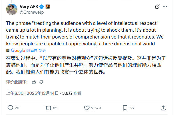 在社交媒体平台上,拉瑞安工作室的发行总监Michael Douse提及了新作预告片对黑暗主题的突出呈现。他透露,在筹备《神界》系列新作的公开事宜时,“以应有的尊重对待玩家群体”是团队反复强调的核心原则。“我们并非为了刻意吸引关注,而是希望内容能契合大家的认知水平,进而引发情感共鸣——毕竟我们相信,玩家具备欣赏一个多维度、有深度世界的能力。”