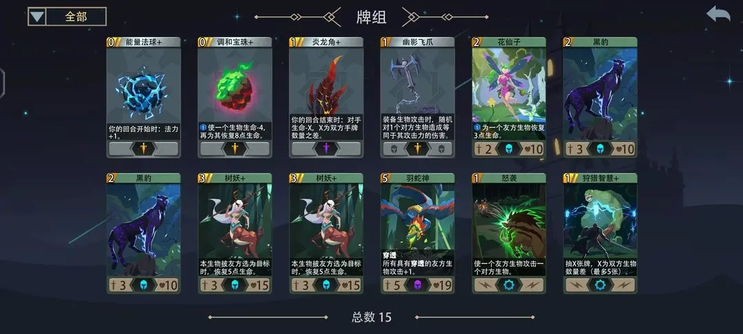 打法思路:通过持续过牌的方式,力求每个回合都能获取怒袭,随后把资源集中投入到树妖身上,以此打出爆发伤害。