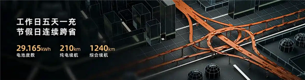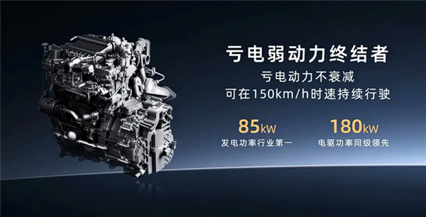 其中增程版车型配备1.5L发动机,其最大功率为74kW,发电效率可达3.73kWh/L;电机最大功率180千瓦,CLTC纯电续航里程达210公里,综合续航里程为1240km,馈电状态下油耗为5.5L/100km,并且支持3C快充功能,仅需15分钟就能将电量从30%充至80%。
