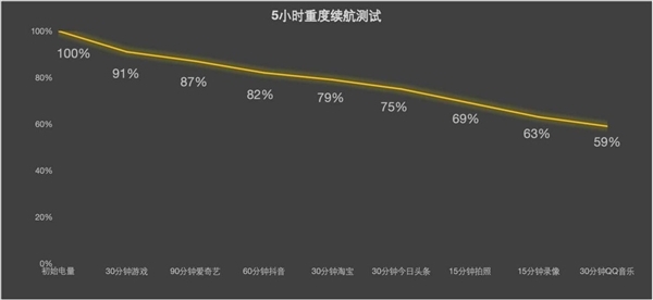 同时,本机还结合了自家的长寿命技术和大容量特性。所以它不仅能解决单次充电的续航焦虑,经久使用也还是能保持长续航。经过5小时重度续航测试,该机还可剩余59%的电量,搭配上面提到的疾速快充,算是做到了“用得久,充得快”。