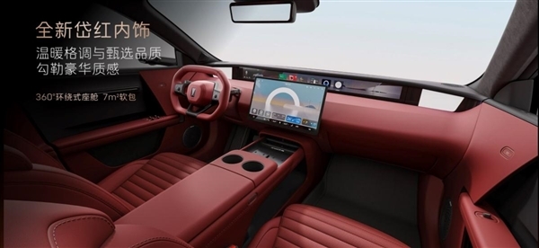 车内搭载35.4英寸4K全景远端屏与15.6英寸中控屏的双屏组合,配备鸿蒙座舱HarmonySpace 5系统,支持四屏联动功能,同时针对车手互联及交互体验进行了优化升级。