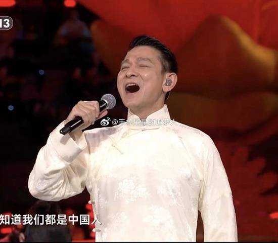 刘德华身着白色唐装亮相舞台,演唱时背景的金龙特效与歌词“手牵着手昂首向前走”交织出震撼的视听效果。台下观众挥舞旗帜齐声合唱,汇成一片“红色星海”,而“手牵着手不分你我,昂首向前走”的歌词更是激起了全场强烈的情感共鸣。