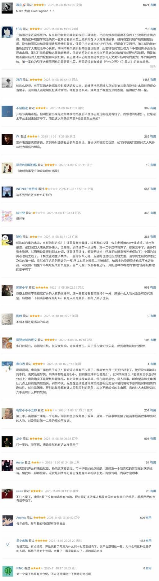 给出好评的观众说,这剧还是当年那熟悉的味儿。也有观众觉得,从一开始的无人知晓到现在口碑爆棚,剧组踏踏实实讲故事,靠着稳定的制作团队把住质量关,没有粉圈互撕、流量争番位之类的糟心事儿,能做到这样已经很了不起了。