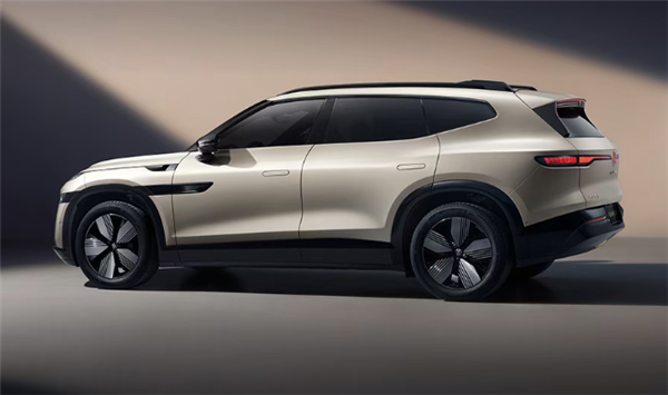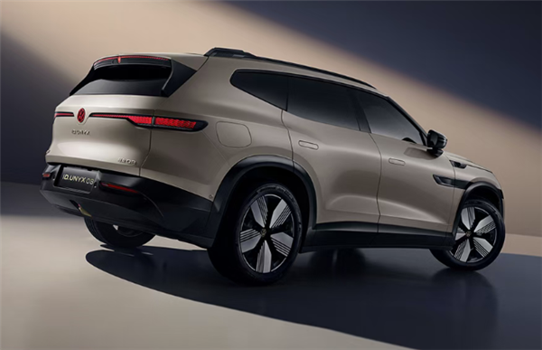 从侧面视角观察,车身整体线条呈现出向上扬起的动感姿态,设计上摒弃了冗余的线条元素。同时,车辆配备了隐藏式门把手与无框车窗,搭配密辐式的轮圈造型,进一步强化了时尚前卫的视觉感受。车尾部分则延续了简约风格,采用了狭长且平直的尾灯组设计,并且在高位刹车灯处融入了狼头标识作为点缀。