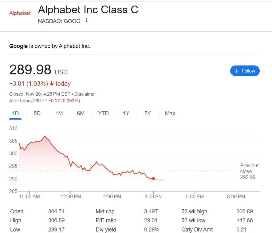 谷歌本周在AI领域动作频频,势头强劲,此次发布正是这一态势的延续。周二推出的Gemini 3在推理与编码能力上取得“巨大跃升”,受此利好推动,周三谷歌母公司Alphabet的股价创下历史新高。到了周四,Nano Banana Pro正式官宣,当天早盘股价一度上涨近5%,不过午盘时随大盘走势转跌,最终收盘下跌约1%,暂时告别了周三刚刚刷新的收盘最高纪录。