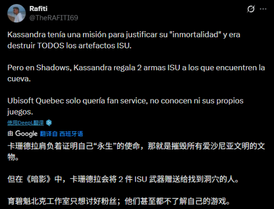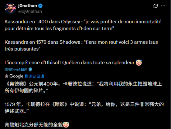 有玩家对这种“吃书”行为表达不满,直言“育碧魁北克怕是连自己做的游戏都没搞明白”——要知道《奥德赛》和《影》都是由该工作室负责开发的。法国知名游戏主播j0nathan也公开发文,认为这一情况恰恰暴露了育碧魁北克的能力短板。