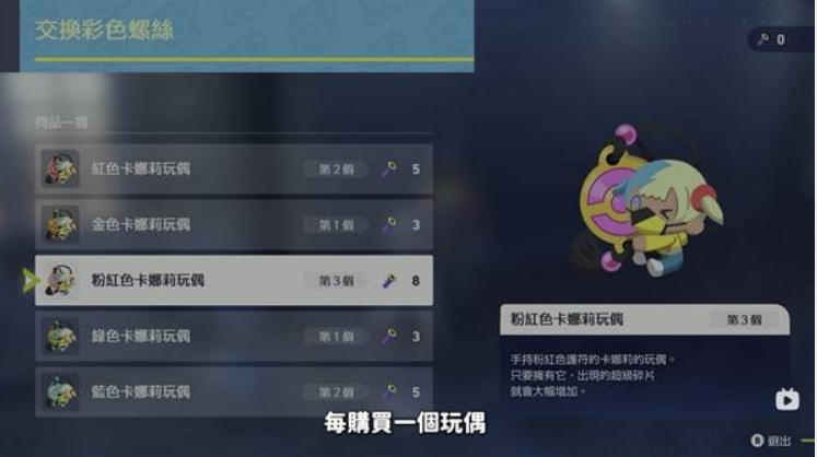 兑换粉红色卡娜莉玩偶后,能够提升超级碎片的获取数量。