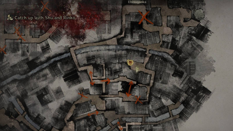 第三张需要互动的海报,实际上是主线推进过程中会遇到的第一张海报,但得先和前两张海报互动后,才能再与这张互动。千鹤屋北边有一条小巷,要从东边绕进去,要是来得比较早,能看到海报旁的墙那里有个敌人。第一次走山路的时候,还会和修、凛子一起穿过这条小巷。