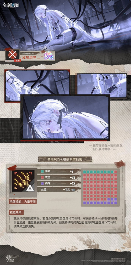 除了新同调者缇诗外,炉·心版本还推出了不少新内容与玩法。其中定向潜航新增了一位“成员”——全新SSR记忆烙痕「魇境边界(攻击)」,活动期间该烙痕的潜航成功概率会限时提高。本期UP结束后,「魇境边界(攻击)」将加入「寻迹潜航·记忆回声」。