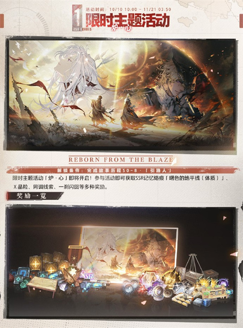 限时主题活动「炉·心」于本次更新后正式开启,参与活动就能获得SSR记忆烙痕「曙色的地平线(体质)」、X晶粒、同调线索、一刹闪回等丰厚奖励。为配合活动进行,游戏同步新增永昼之庭、恩古拉两张地图,以及专属活动关卡、「战神莎拉塔尔」「战神迦路」和波纹电磁发生器等一系列全新玩法,让监督的游戏体验更加丰富。