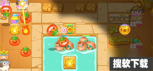 在左侧区域搭建一座香水瓶炮台,它所具备的特殊效果(像减速、中毒之类)能够协助其他炮台进行输出。