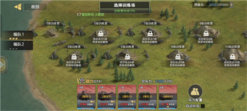 点击征兵处即可开展训练,在兵损控制在合理范围的前提下,应尽可能选择高等级的训练项目。