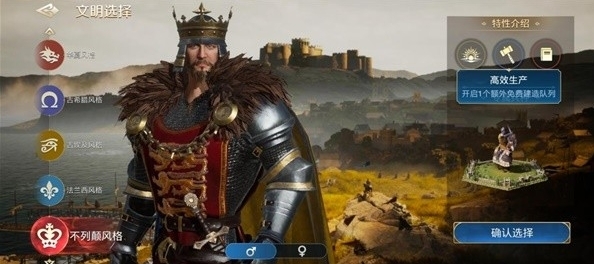 不列颠的文明特性名为“日不落”,每占据一座玩家城市,每小时的银币产量就会增加500。这个特性实用性很高,一旦分城数量增多,提升的银币产量再结合税收机制,一天下来能额外获得数万银币,是积累资源的必备优势。第二个优势在于其专属科技——可解锁1个额外的免费建造队列,这对平民玩家而言能省下不少银币和金币,有助于缩小与高端玩家的差距,同样是相当实用的科技特性。不列颠文明的特色兵种有两个:一是铁器时代的物理输出骑兵“贵族骑士”,二是火器时代的物理输出骑兵“英国龙骑兵”,二者的输出能力都颇为出色。