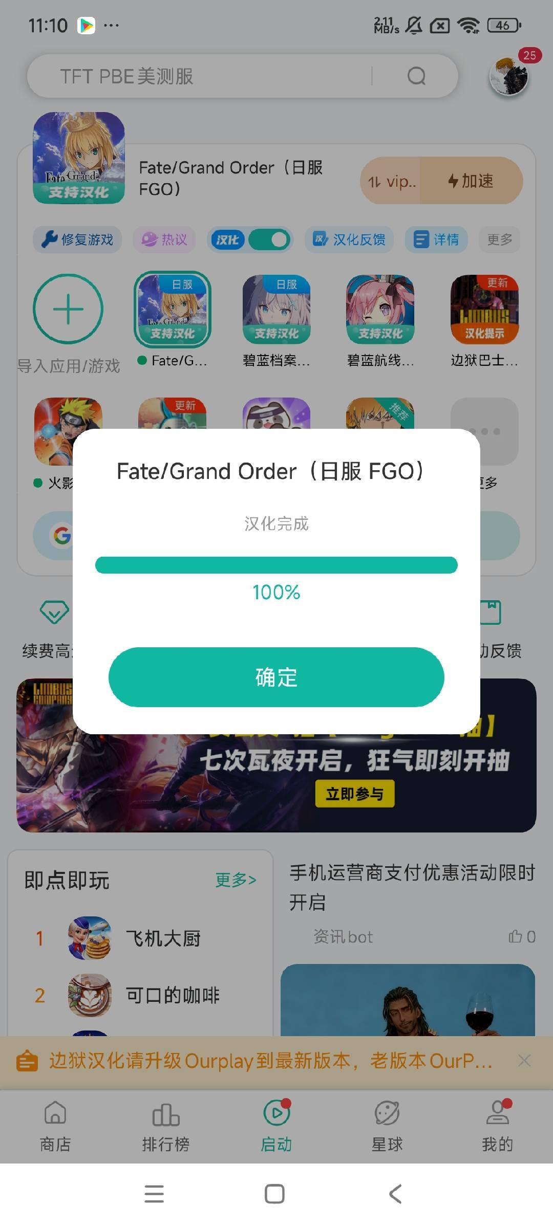 现在Fate/Grand Order日服(FGO)游戏的汉化工作已经完成。只需点击游戏图标,系统便会自动完成加速并启动游戏,这样就能体验到汉化版的“Fate/Grand Order日服 FGO”了。