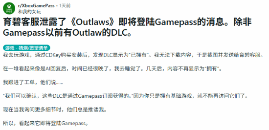 这也让发帖人和其他网友纷纷猜测,Xbox Game Pass或许正在计划把《星球大战:亡命之徒》纳入其游戏库。