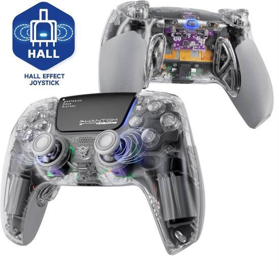 追求顶级配置的玩家可以直接关注这款HEXGAMING PHANTOM Pro。作为专为电竞打造的设备,其最核心的配置亮点在于搭载了“霍尔效应”模拟摇杆,从根本上解决了困扰无数玩家的“漂移”难题。不仅如此,它的背部还内置了四个可编程按键,并且支持多达六组个性化配置方案,要说不足的话,大概只有价格偏高这一点了。
