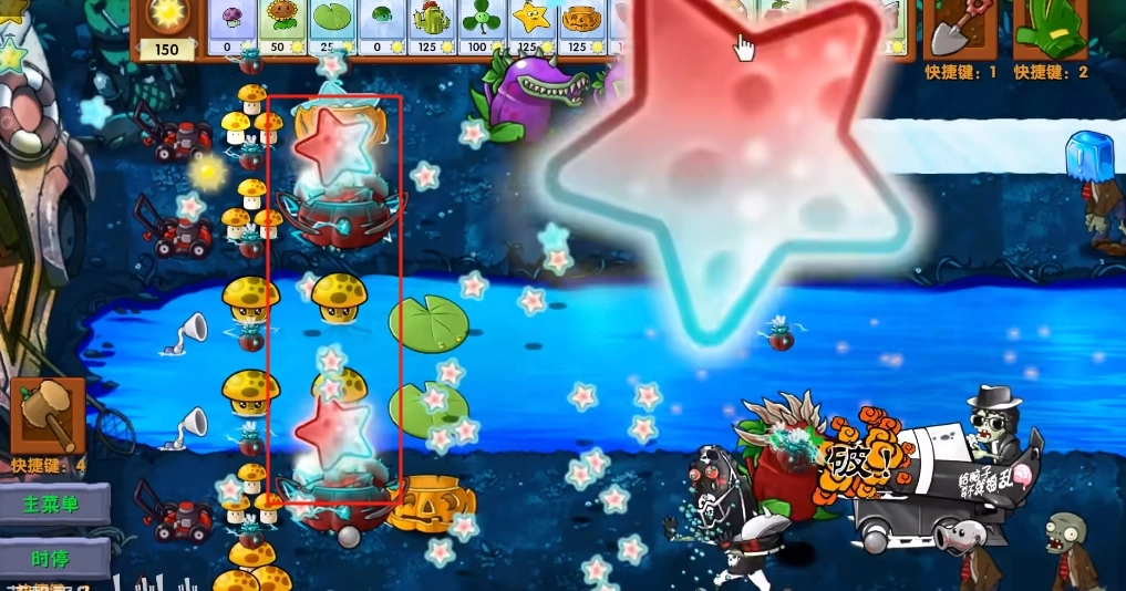 每隔一阵子,就能生成一颗巨大的星星,朝着僵尸所在的方向落下,随后裂变成几十颗星星展开攻击。