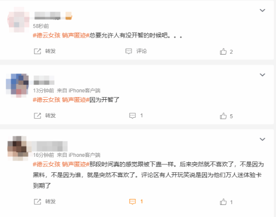 但现在,评论区里获赞数很高的留言说“大家都在那几年喜欢过,又不约而同‘开了窍’似的当作没这回事”,还有用户干脆直接表示“真希望没人记得我曾经喜欢过德云社”。