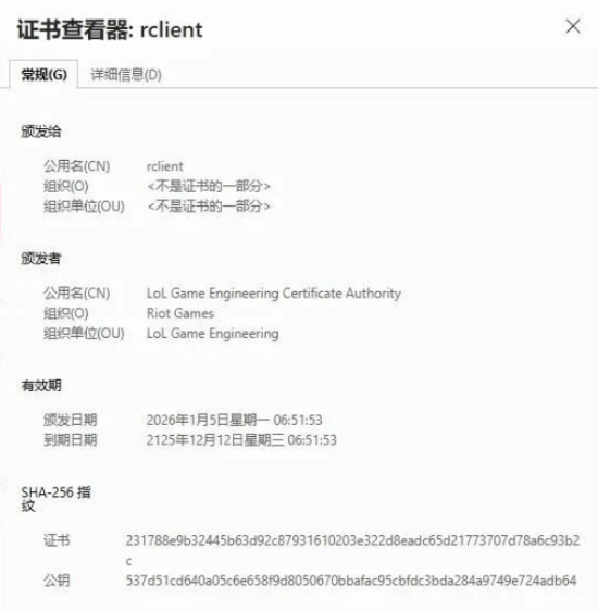 目前微博上有消息称,大概率是《英雄联盟》在2016年签发的十年期SSL证书到期后忘记续期了。为了避免此类情况再次发生,官方甚至直接续期了100年,一直到2125年。