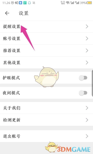 3、进入已打开的设置界面,点击其中的提醒设置选项。