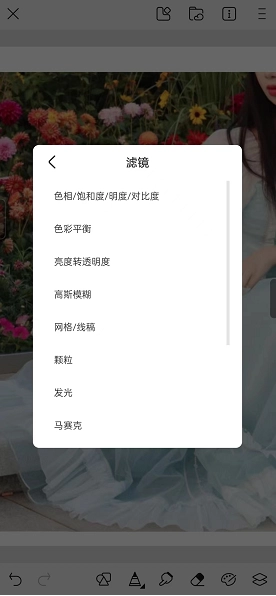 1、首先,我们来看看画世界app里滤镜设置的位置。在图层设置中,能看到【滤镜】选项,点击后,会出现许多可供选择的工具,在这里可以调整该图层的色相、饱和度、对比度等,如图所示: