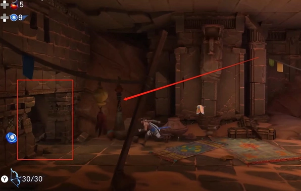 3、玩家跳下来后,能看到此处有个可互动的机关,直接与之互动即可。