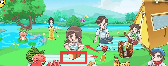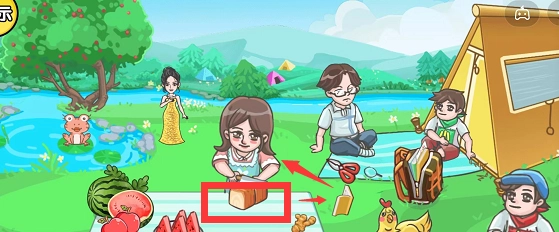 1. 轻点青蛙,青蛙即刻变为粉色。在书包的旁边放置着一个放大镜,拿起放大镜去查看青蛙,青蛙便会摇身一变成为女娲。