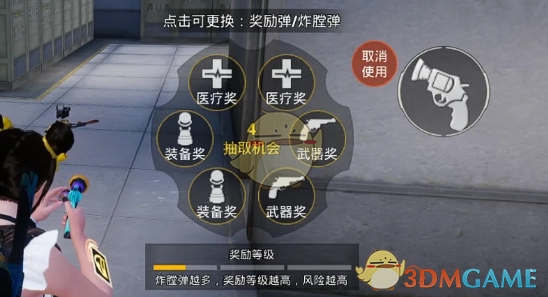 3、初始奖励设定为默认医疗奖、装备奖以及武器奖各两个。玩家能够对奖励进行切换,可把任意一种奖励替换成炸膛。要是运气欠佳抽到炸膛,玩家的血量就会被扣掉一大截。