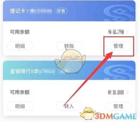 3、进入我的银行卡页面,点击“管理”。图示如下: