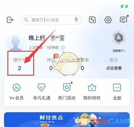 2. 进入“我的”界面,选中“银行卡”选项。图示如下:
